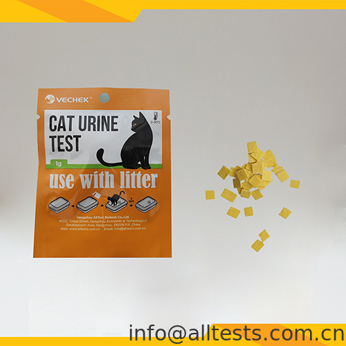 2. โรยชุดทดสอบไมโครอัลบูมินในปัสสาวะแมวให้ทั่วทรายแมว