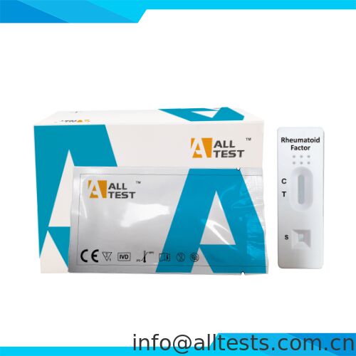 ชุดทดสอบหาปัจจัยรูมาตอยด์อย่างรวดเร็ว (เลือดครบส่วน/ซีรั่ม/พลาสมา) เป็นชุดทดสอบอิมมูโนโครมาโตกราฟีอย่างรวดเร็วสำหรับการตรวจหาเชิงคุณภาพของแอนติบอดี IgM ต่อปัจจัยรูมาตอยด์ในซีรั่ม พลาสมา หรือเลือดครบส่วนของมนุษย์ เพื่อช่วยในการวินิจฉัยโรคข้ออักเสบรูมาตอยด์